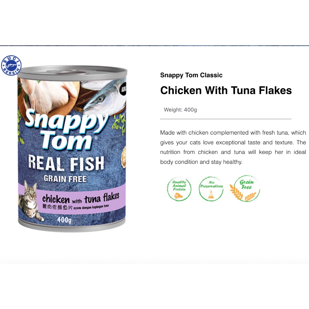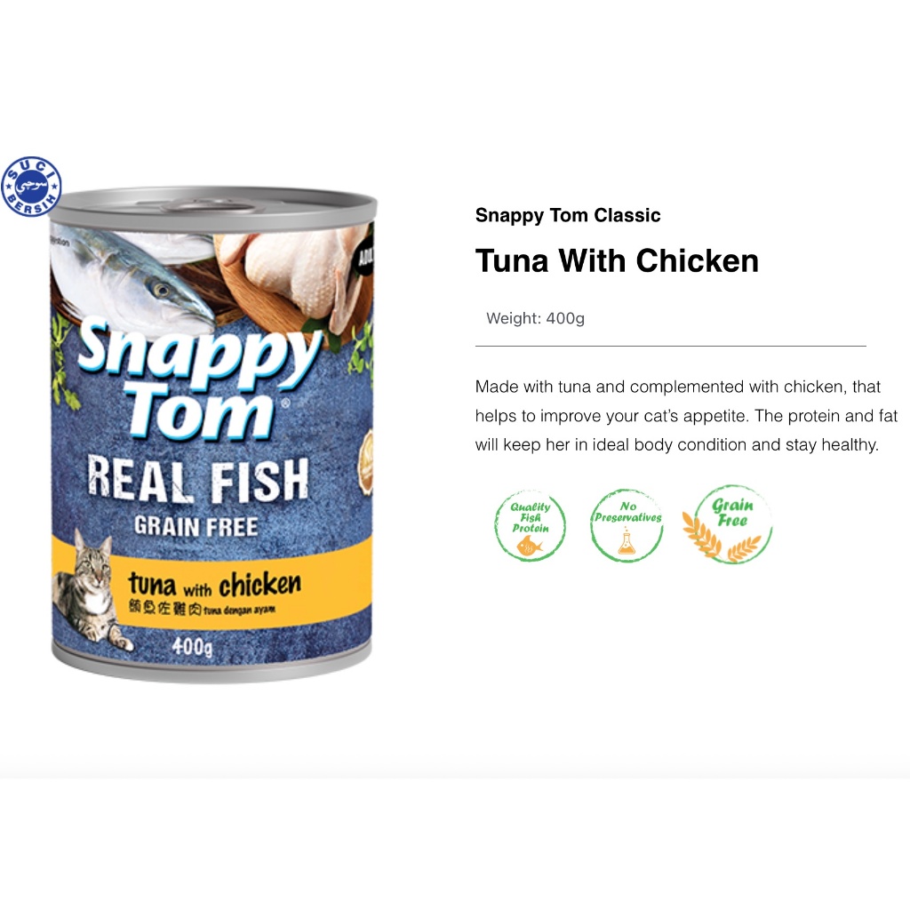 [Stock Ready] 🚀SNAPPY TOM CANNED FOOD FOR CAT 400G /Baby Snappy Tom Can Food (CHICKEN , TUNA , SARDINE , FISH )