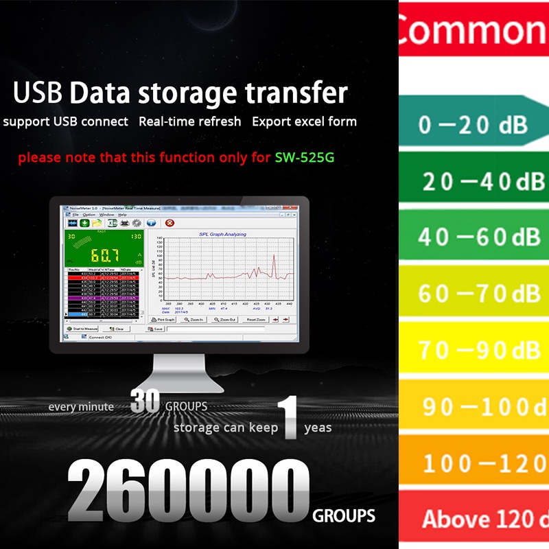 SNDWAY Digital Sound Level Meter Indoor Outdoor Noise Meter Wall Mounted Decibel 30~130dB