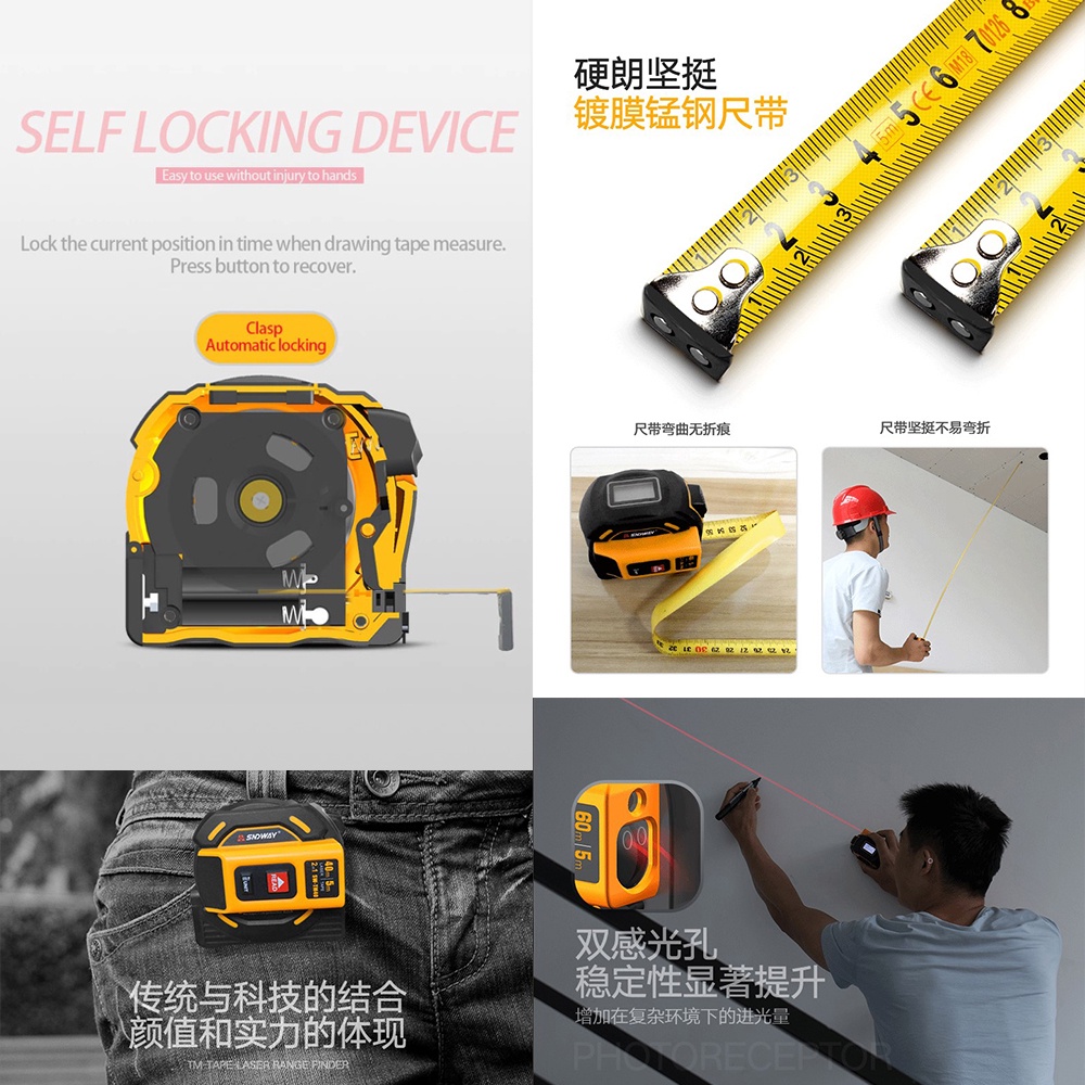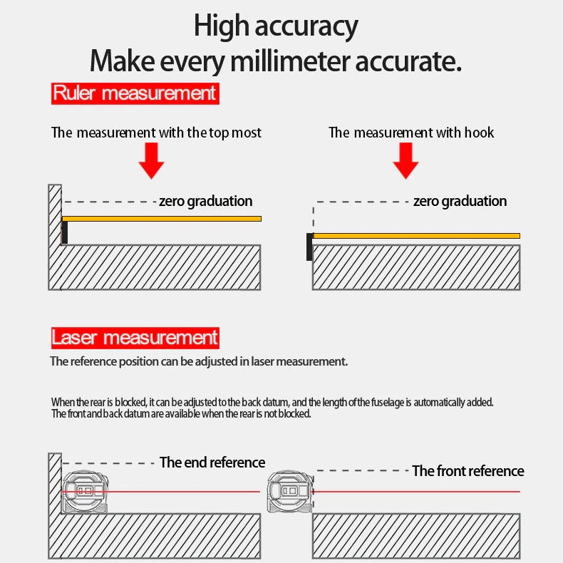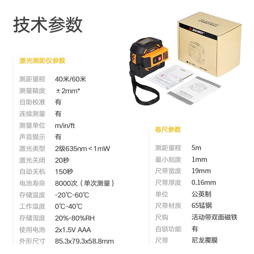 SNDWAY Laser Distance Meter Tape Rangefinder Ruler Measuring Tool 2 in 1 Digital 5m Measure Measurement LCD Display
