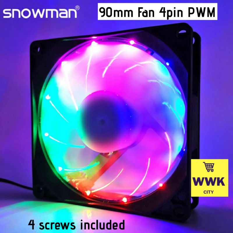 SNOWMAN 90mm PC Fan 4pin PWM 9cm PC case fan Kipas Komputer CPU 90mmx90mmx25mm 92mm RGB