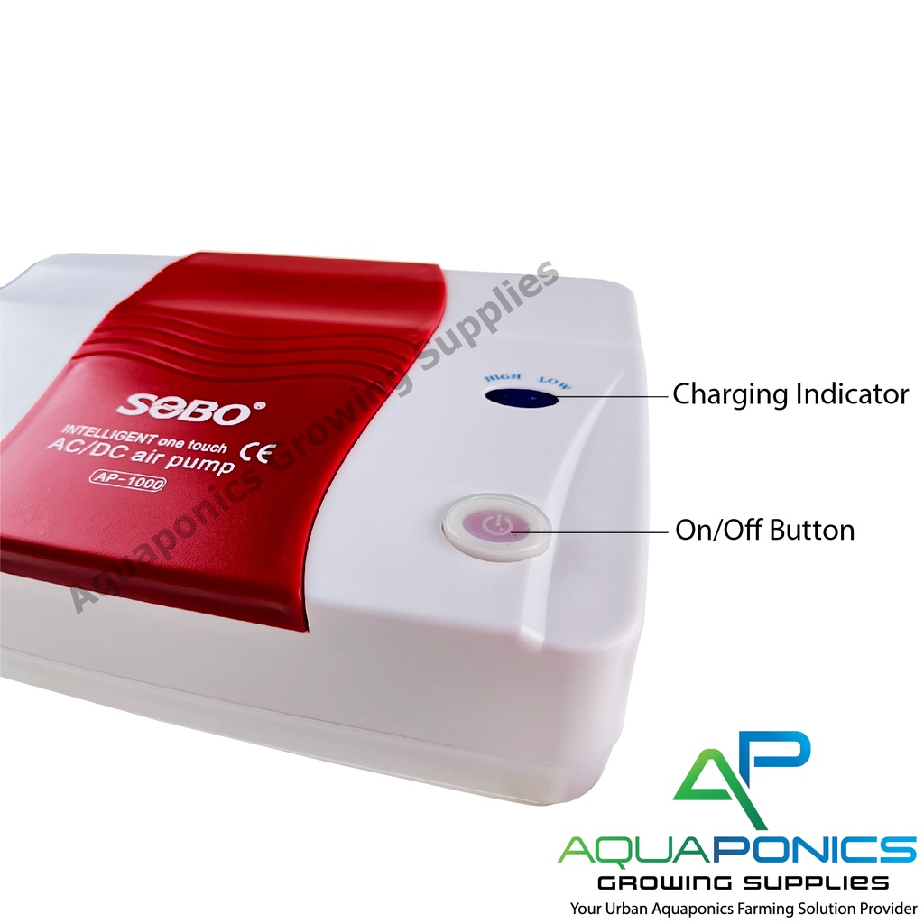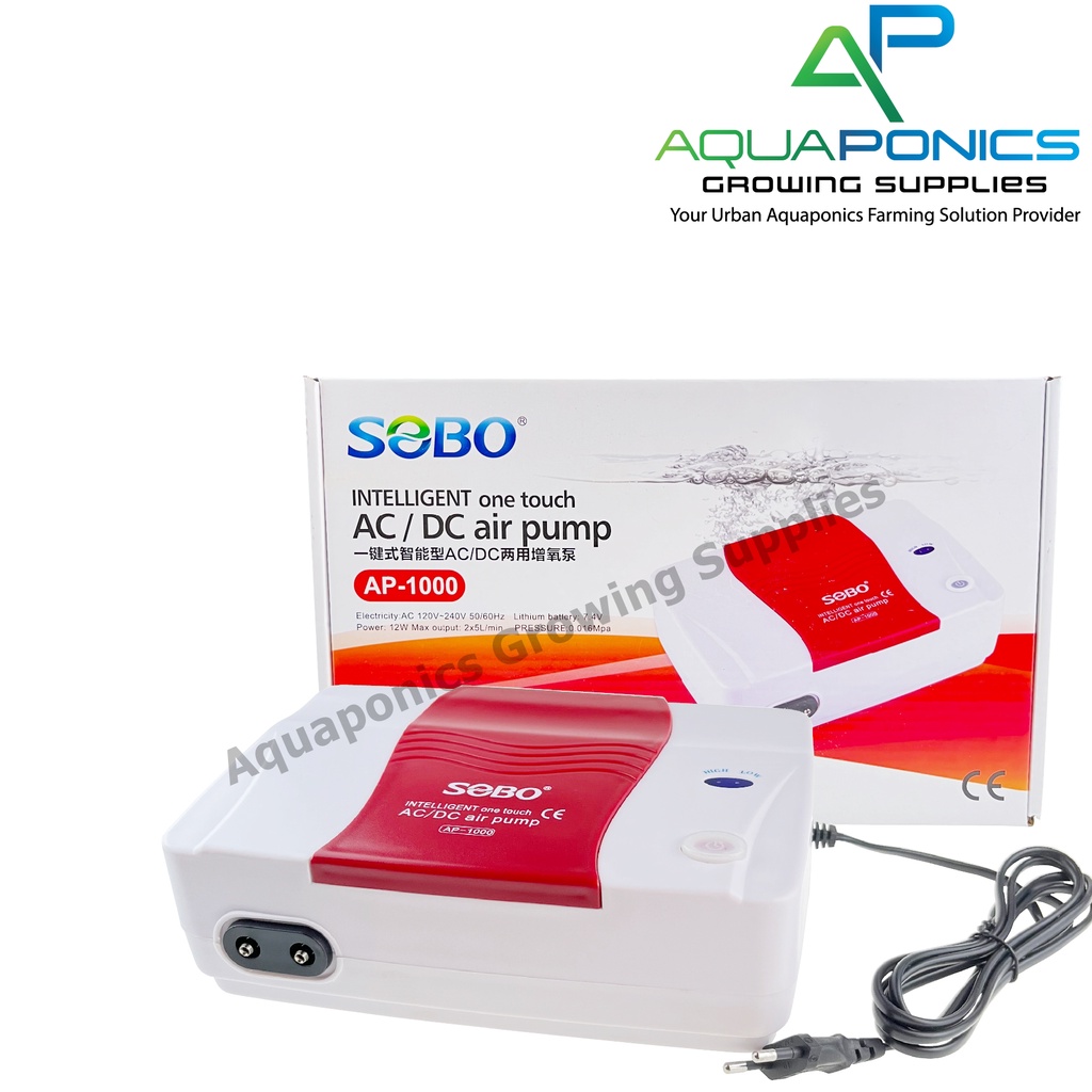 SOBO Aquarium AC/DC 12W Air Pump AP-1000 Aquaponics Fish Tank 2x5 Liter/min Air Pump
