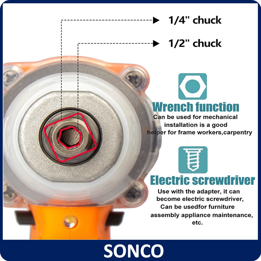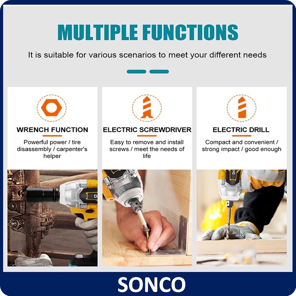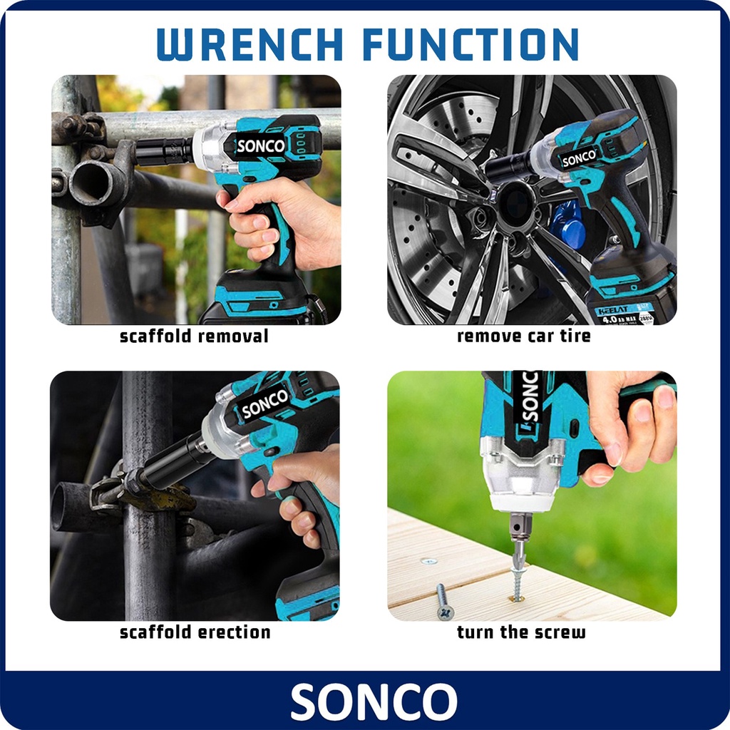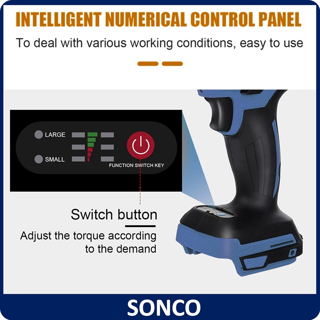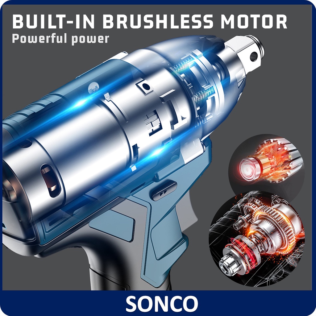 SONCO 1/2 1/4 Inch Cordless Impact Wrench Electric Impact Brushless Wrench Drill Tool Perengkuh Kesan Elektrik Screw