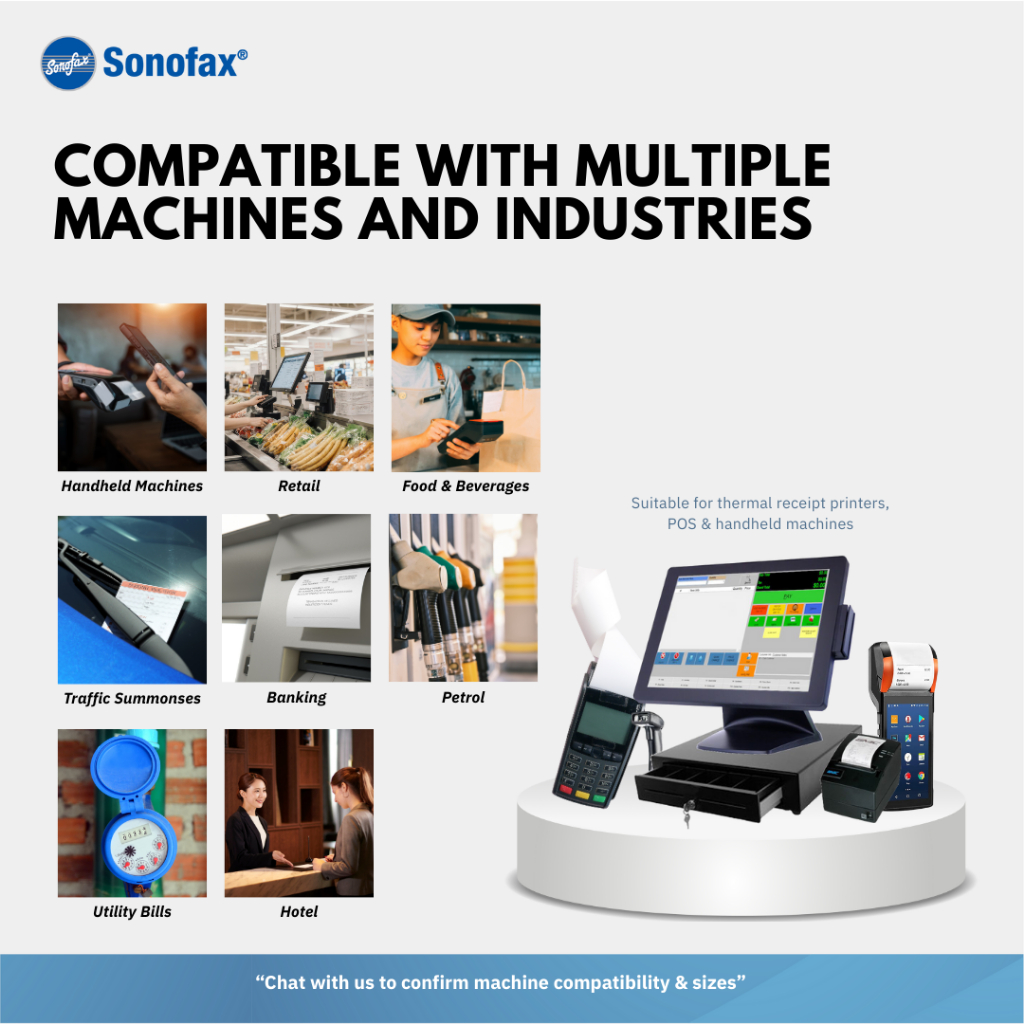 SONO-ROLL Blank Thermal Receipt Paper (80mm x 60mm x 12mm x 100 Rolls)