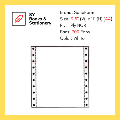 SONOFORM / AKIRA Computer Form NCR Paper 9.5'' X 11'' / A4 - 1Ply 2Ply 3Ply 300 400 900 / Color