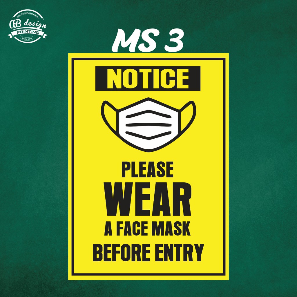 SOP STICKER WEAR FACE MASK WARNING SIGN READY STOCK