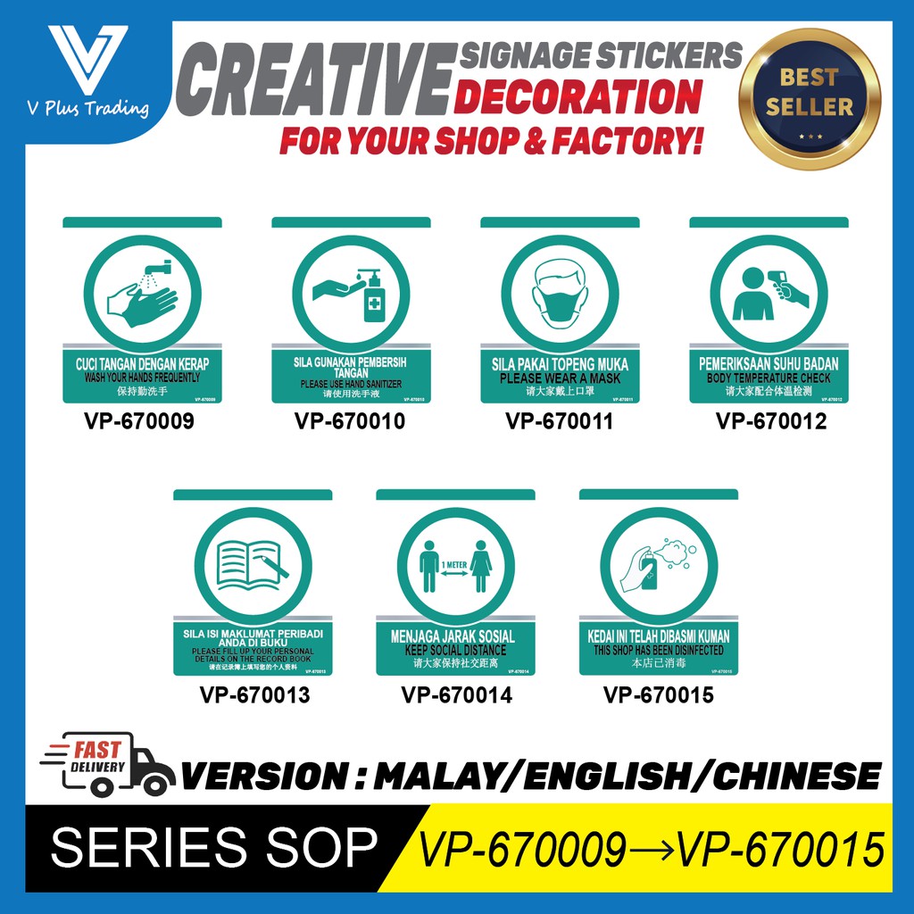 Normal Series Signage Stickers 6''X7'' Version: Malay/English/Chinese Code:VP-670002_VP-670015