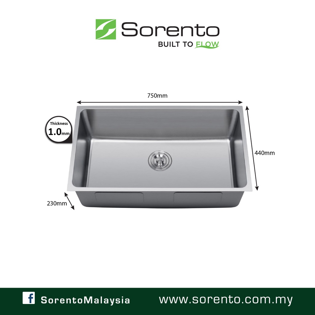 SORENTO SRTKS2409 Undermount Stainless Steel 304 Single Bowl Kitchen Sink / Sinki Dapur / Sink Tap