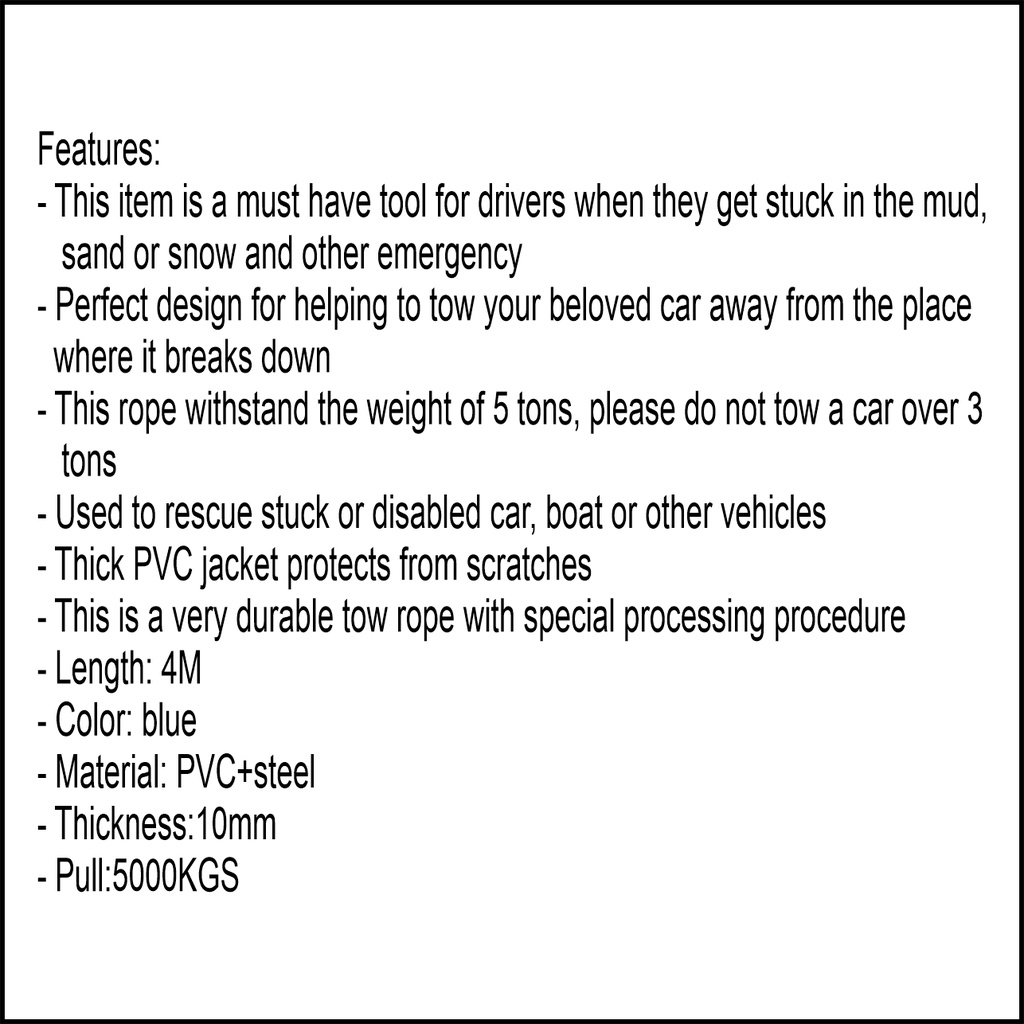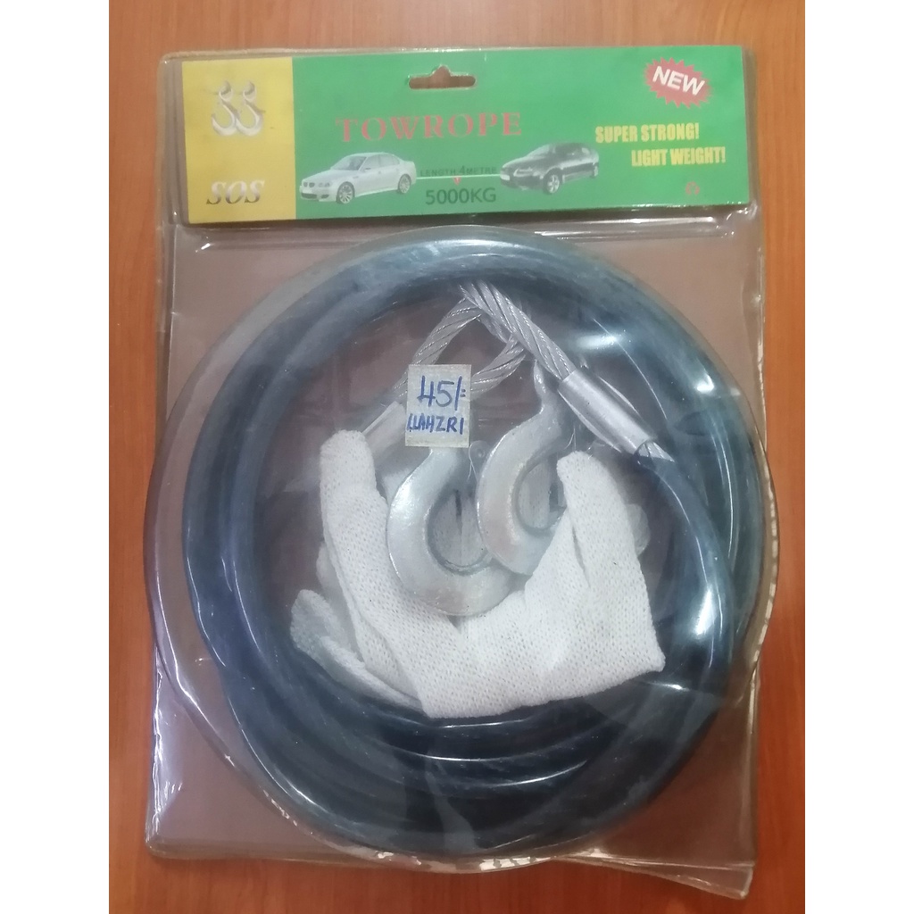 SOS Tow Rope Heavy Duty Recovery Car Van Wire Rope 4 Metre 5000kg