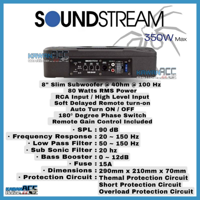 SOUNDSTREAM 8 inch Ultra Compact Subwoofer SB.8AM Active Subwoofer Buit-in Amp