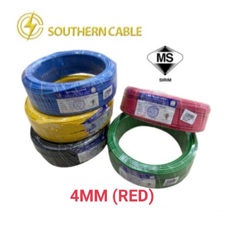 SOUTHERN CABLE 4MM PVC INSULATED CABLE RED/YELLOW/BLUE/GREEN/BLACK 100% COPPER CABLE SIRIM & JKR APPROVE SPEC MEGA CABLE