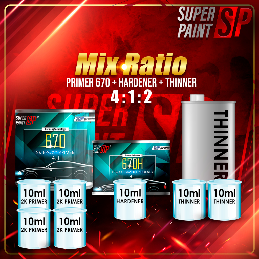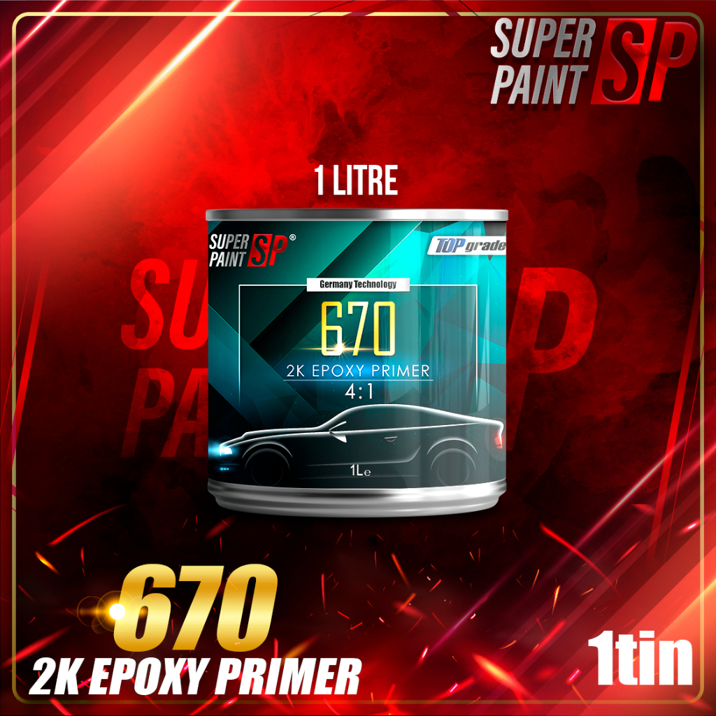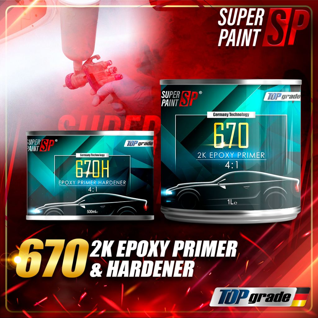 SP 670 2K Epoxy Primer & Hardener 4:1 Undercoat Primer GREY Spray Besi Metal Primer Coat DIY Kereta