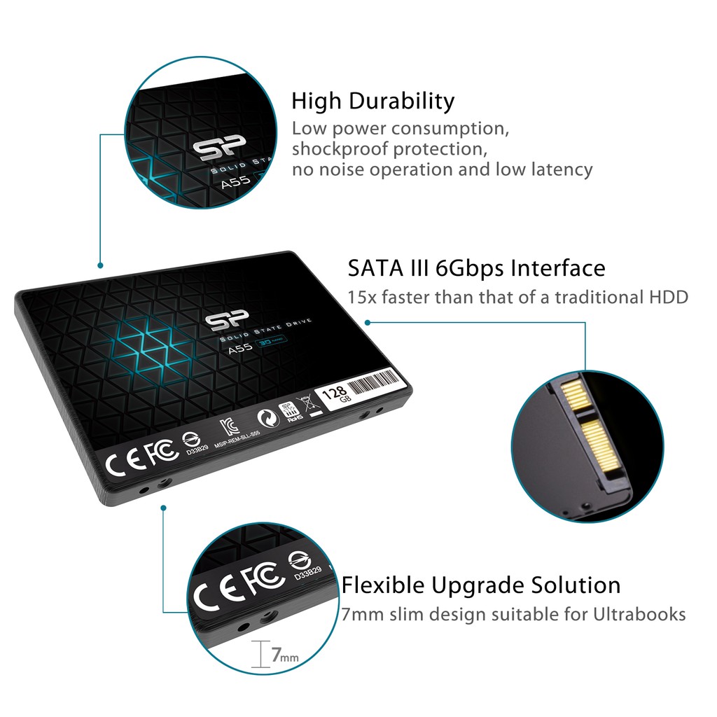 SP SoliD State Drive A55 SSD 3D TLC NAND SATA III (128GB/256GB/512GB/1TB) / 2.5" to 3.5" Installation Bracket