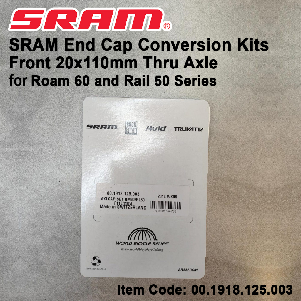 SRAM Axle Convertion Cap 20mm x 110mm Front for Sram Roam 60 Rail 50 Series Hub Convertor