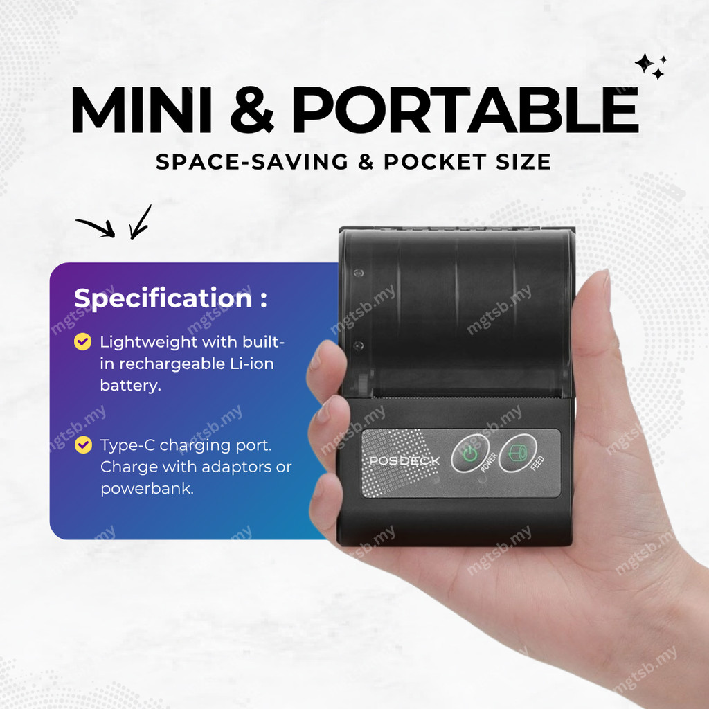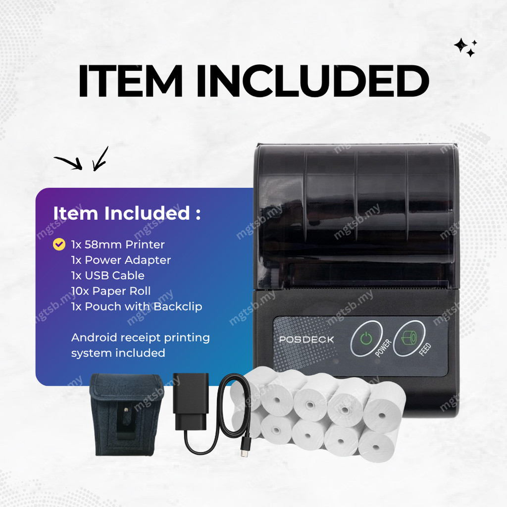 POSDECK 58mm Thermal Receipt Printer Bluetooth Resit Mesin Topup Phone SRS Wireless Portable Loyverse