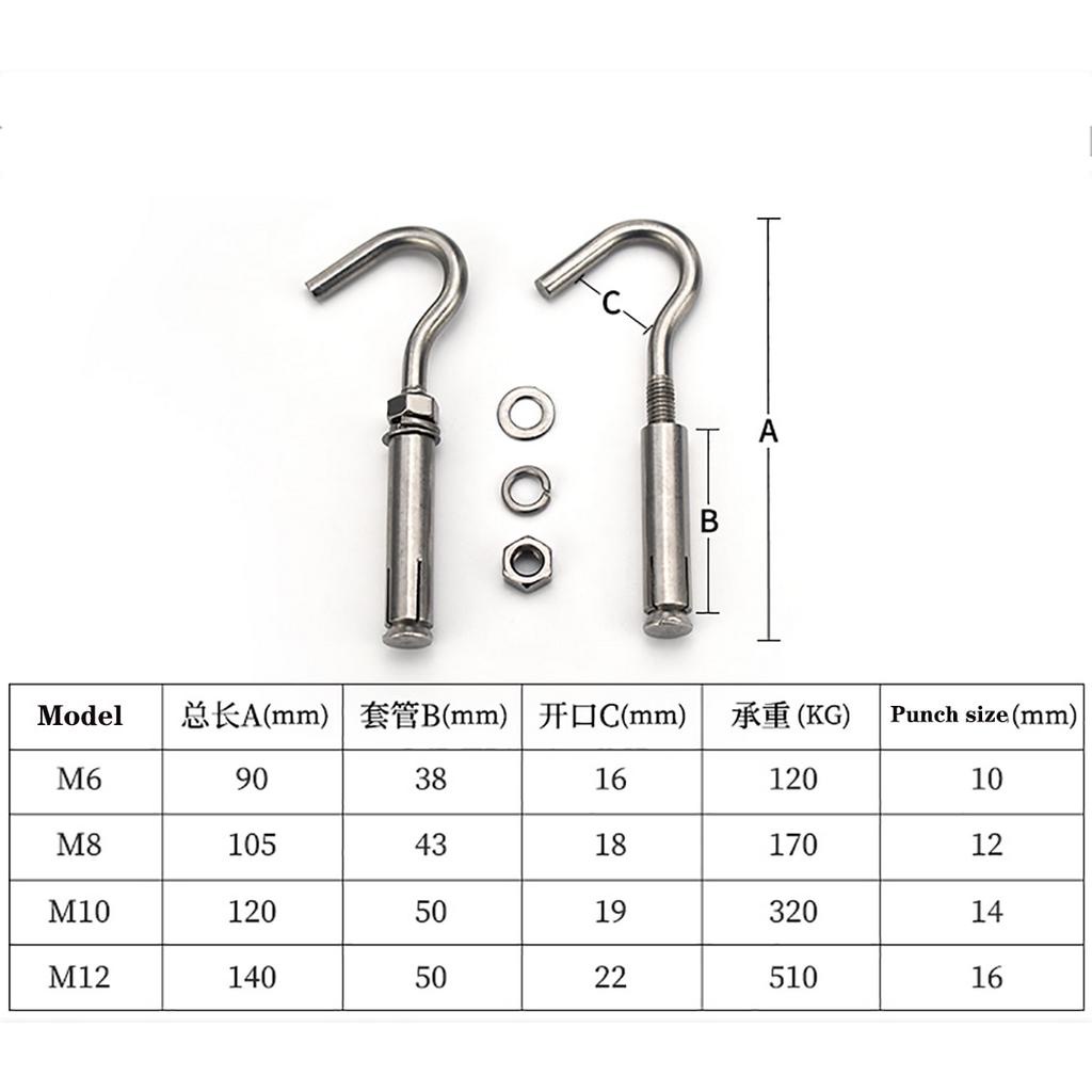 SS 304 Expansion Hook Bolt Anchor Stainless Steel 304 Wall Plug with Hook M6 / M8 / M10
