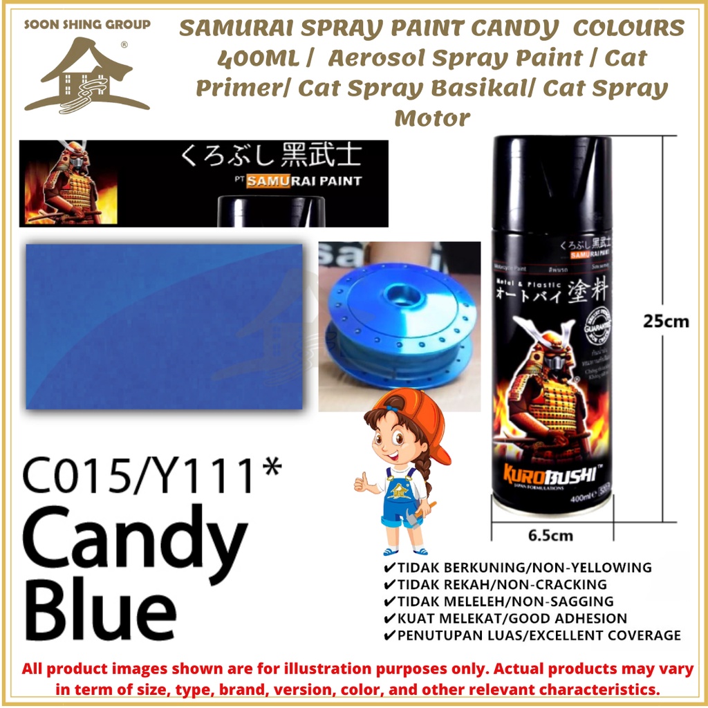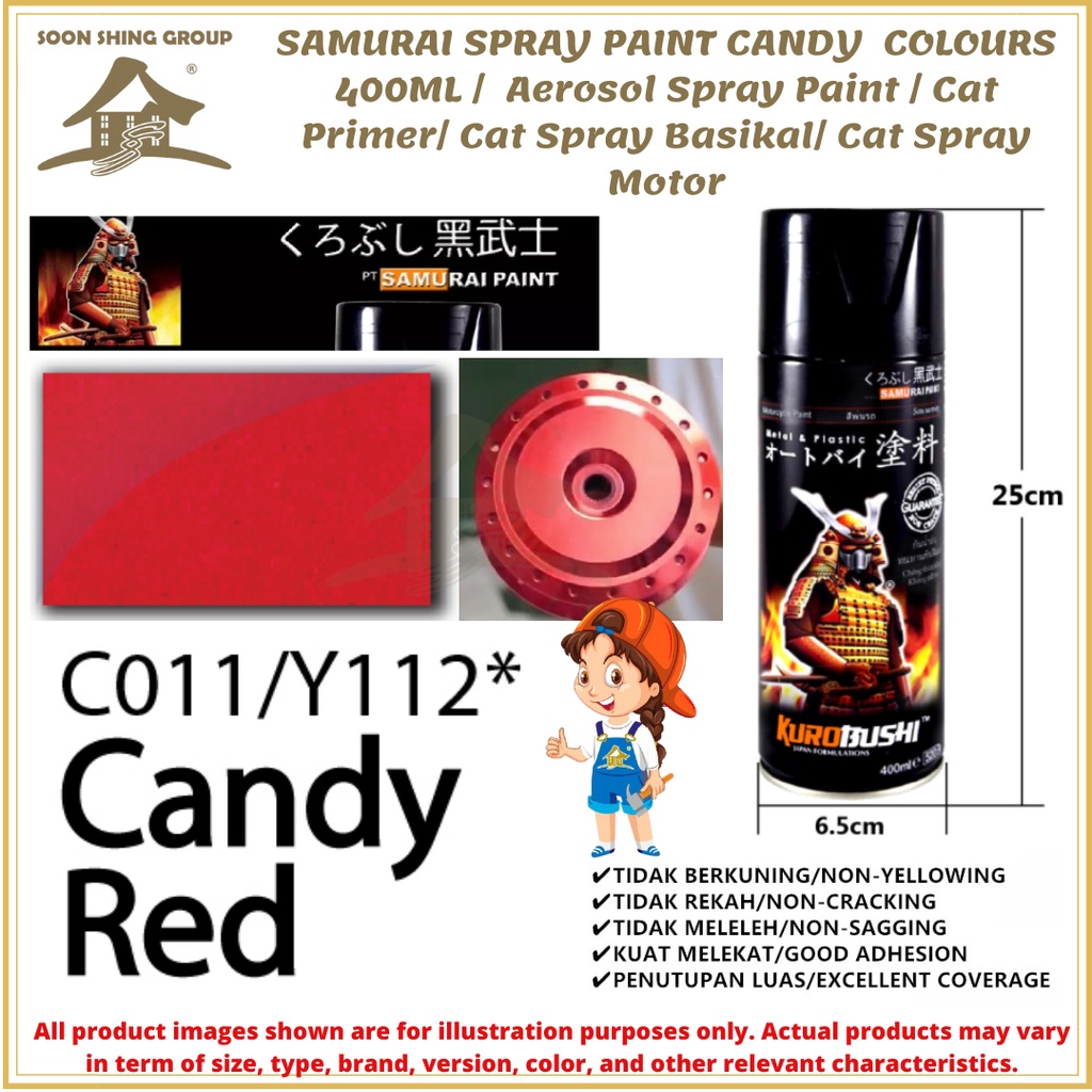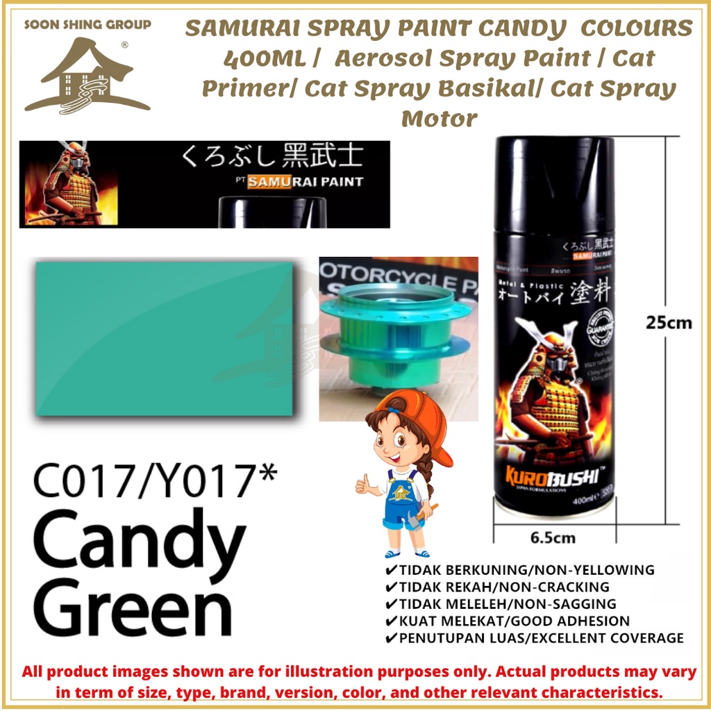 SS05 SAMURAI SPRAY PAINT CANDY COLOURS 400ML / Aerosol Spray Paint / Cat Primer/ Cat Spray Basikal/ Cat Spray Motor