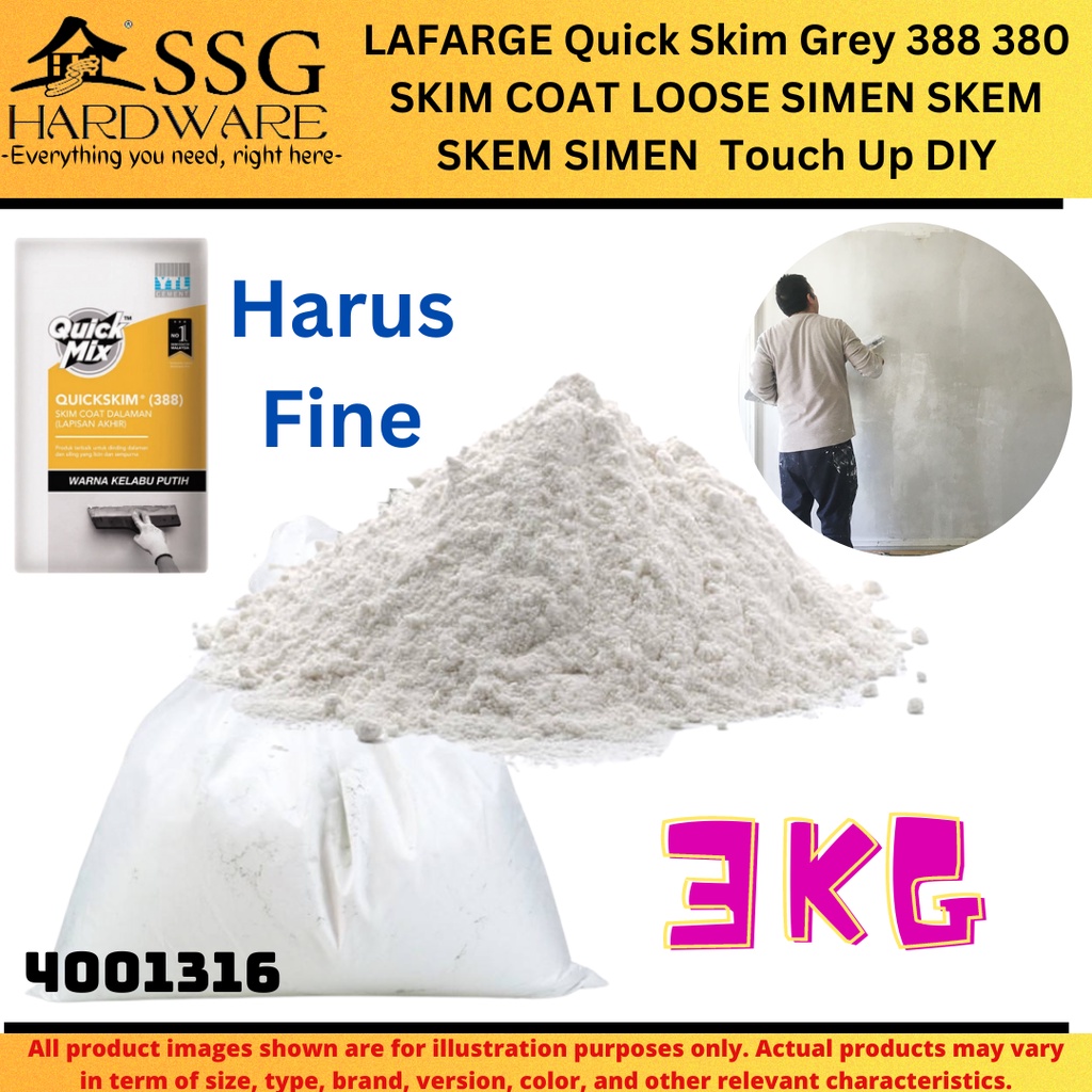 SSG400 LAFARGE Quick Skim Grey 388 380SKIM COAT CEMENT FINE WHITE COLOR LOOSE SIMEN SKEM SKEM SIMEN HALUS Touch Up DIY