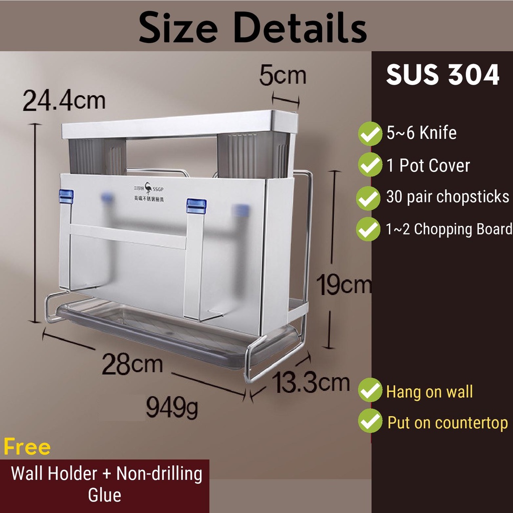 🔥 Final Clearance| Limited Stock | SSGP 304 Stainless Steel Kitchen Knife Utensils Cutlery Holder