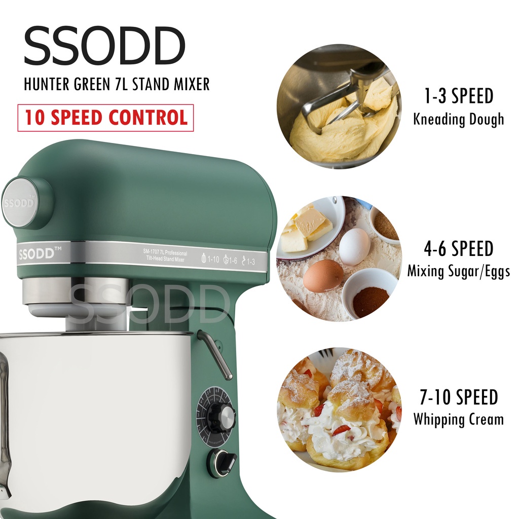 SSODD Hunter Green 7L Professional Tilt-Head Stand Mixer