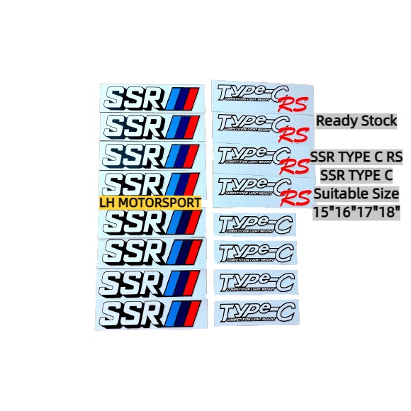 SSR Type C Sticker/Rim Stiker SSR Type C RS 1set=4pc Original Spec Myvi Alza Axia Saga Blm Wira Jazz Vios Ctiy Yaris