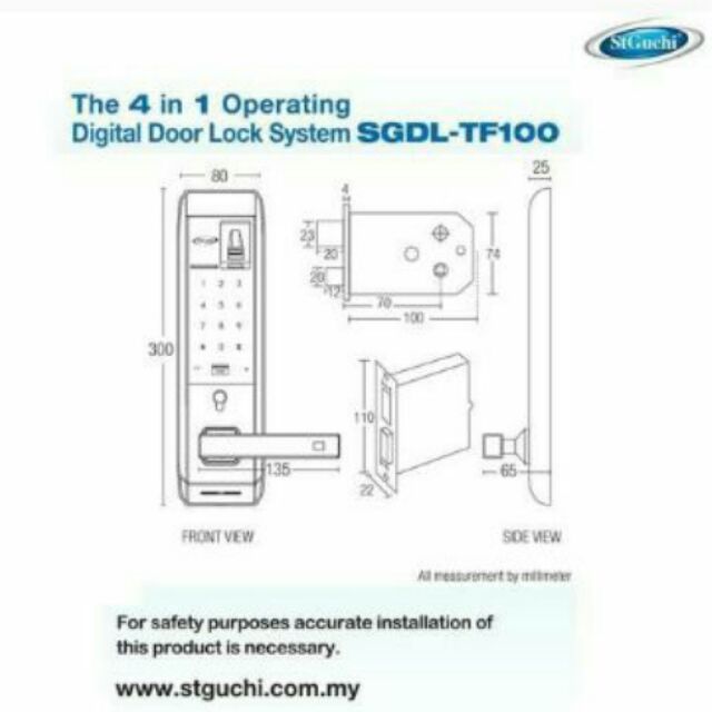 ST GUCHI SGDL TF 100 FINGERPRINT DIGITAL DOOR LOCK (FREE Yale / Hafele / Samsung Door Lock RFID Card x1) M89