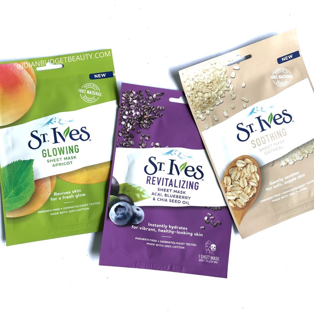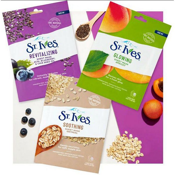 ST.IVES FACE SHEET MASK 1 Pcs (REVITALIZING,GLOWING,SOOTHING)