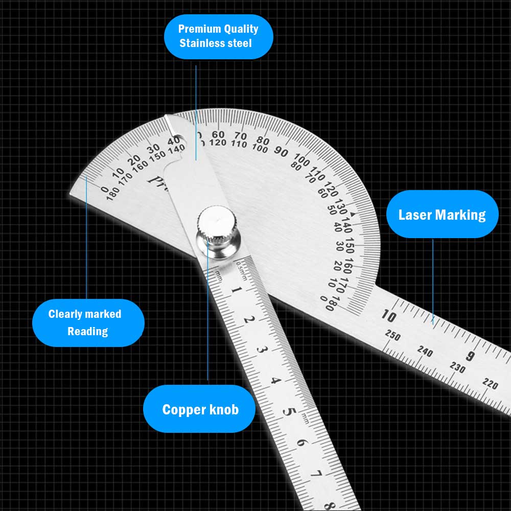 STAINLESS STEEL 180 DEGREE PROTRACTOR 20CM/30CM/15CM ANGLE MEASUREMENT TOOL PROTRACTOR AND RULER