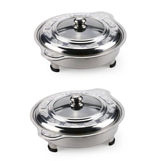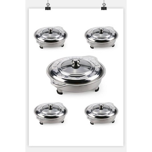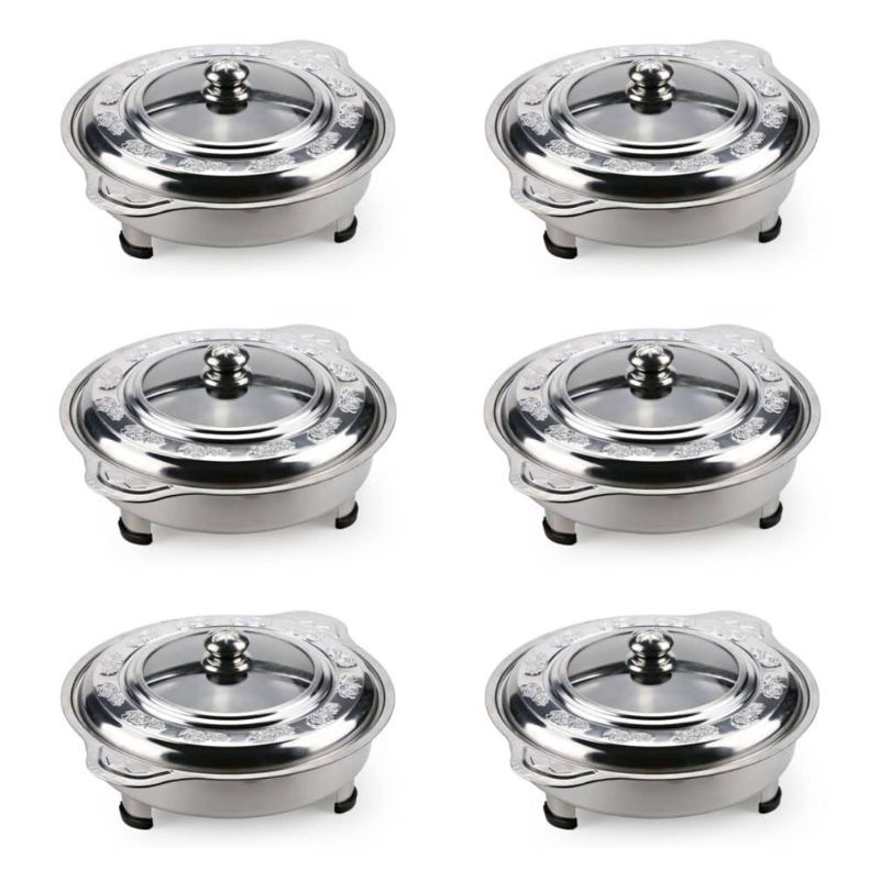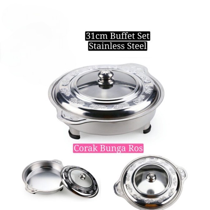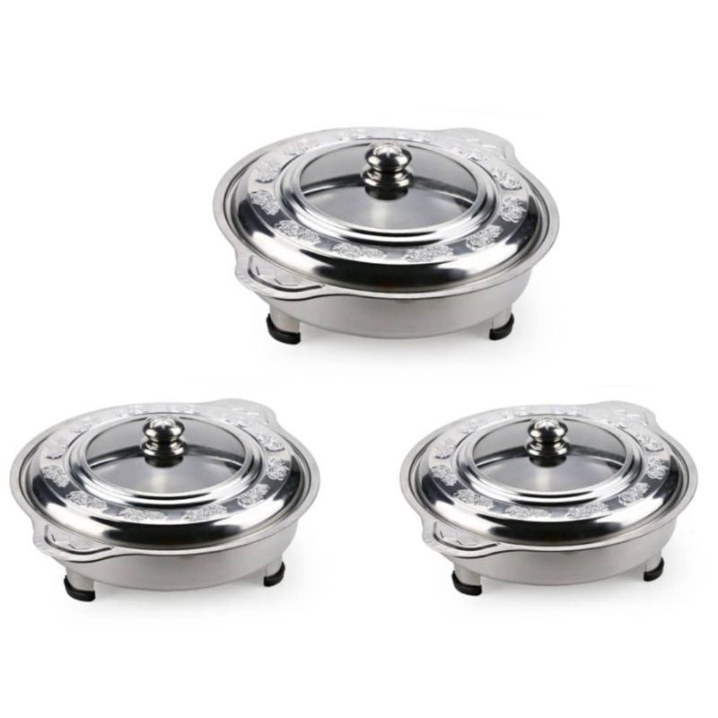 STAINLESS STEEL BUFFET SET PARTY SET BUFFET TRAY CHAFING DISHS BUFFET EMBOSSED GLASS COVER BERKAS LAUK CATERING