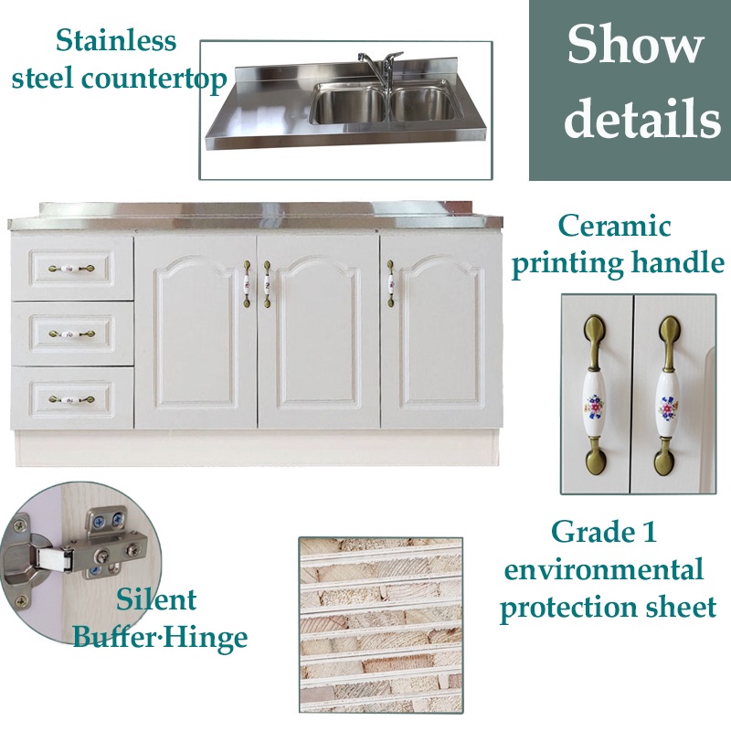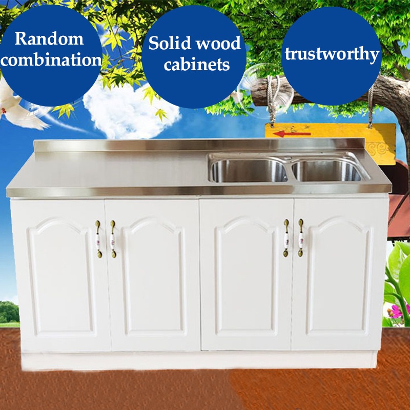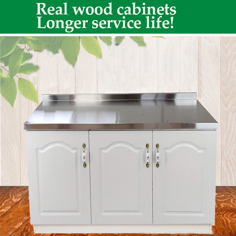 STAINLESS STEEL Cabinet Kabinet Dapur SOLID WOOD Kitchen Cabinet Storage Flat Surface/With Basin/With Stove Top Space