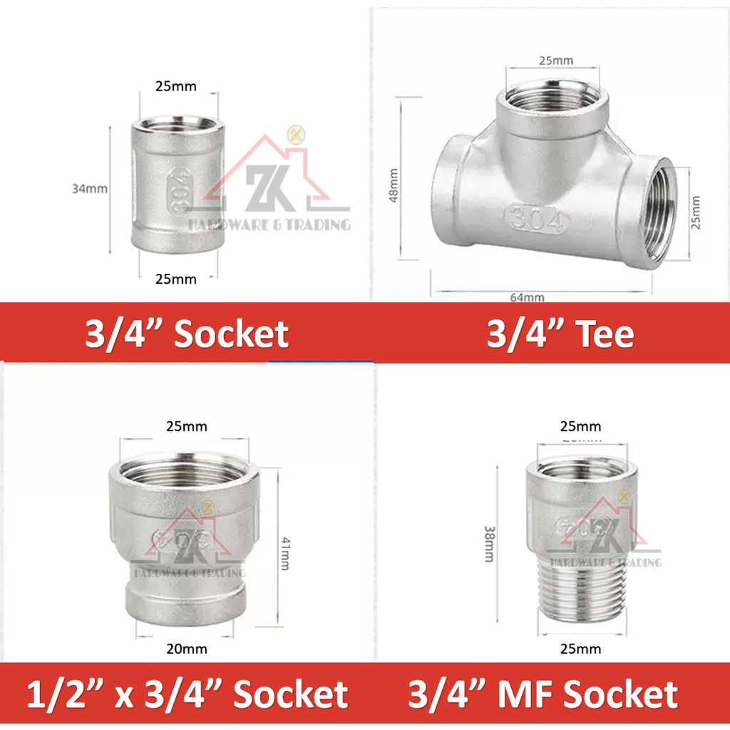 STAINLESS STEEL PIPE FITTING TEE SOCKET ELBOW MF ELBOW MF SOCKET PLUG LOCK NUT END CAP NIPPLE REDUCE SOCKET ELBOW BUSH