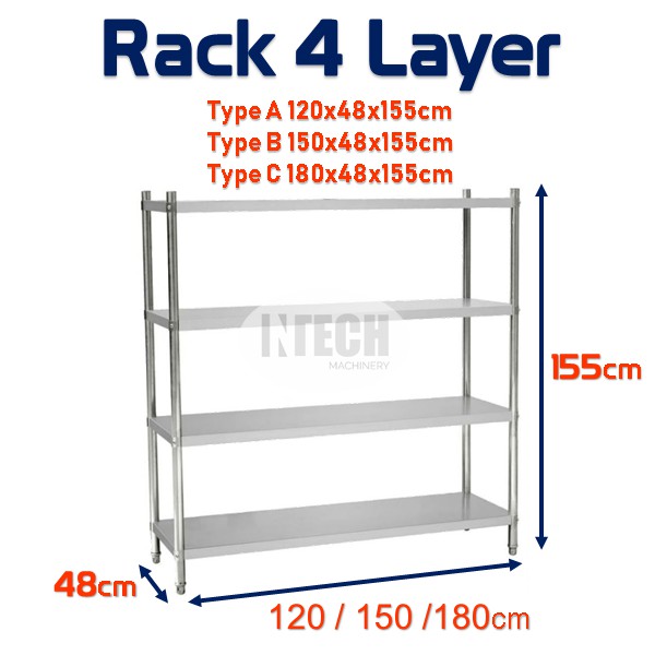 STAINLESS STEEL RACK 4 TIER / 4 LAYER RACK (SOLID)