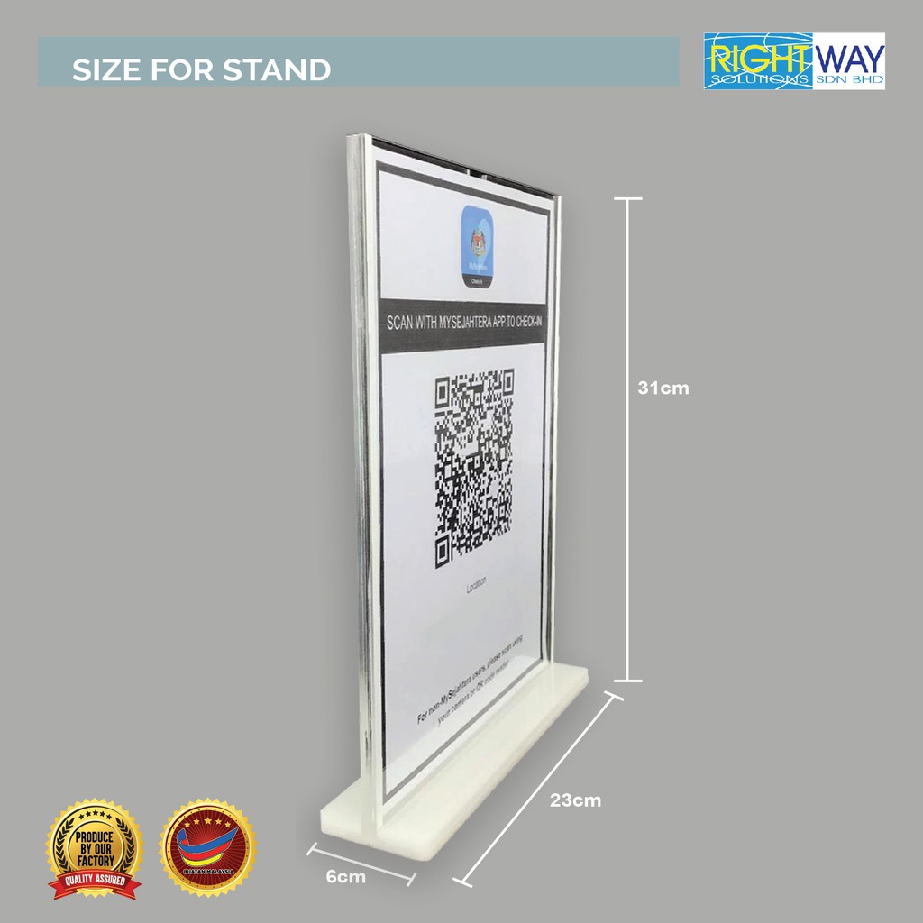 STAND QR CODE | MY SEJAHTERA | SELLER FROM MALAYSIA | 3mm ACRYLIC | DOUBLE LAYER | 23CM X 31CM X 6CM
