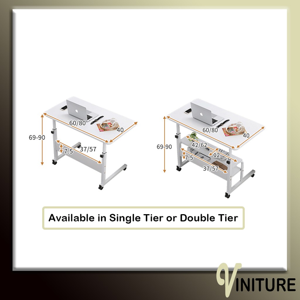 STANDARD Movable Height Adjustable Bedside Table Laptop Table Computer Desk [80cm]
