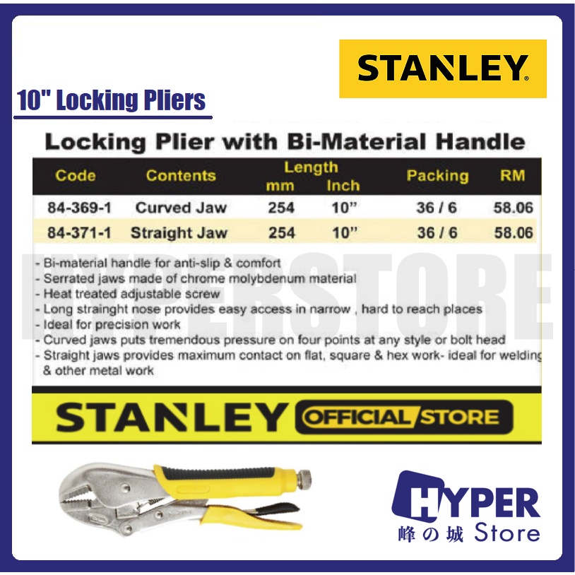 STANLEY 10'' Locking Pliers / Jaw Pliers / Tang Pengunci / With BI-Material Handle (84-369 / 84-371)