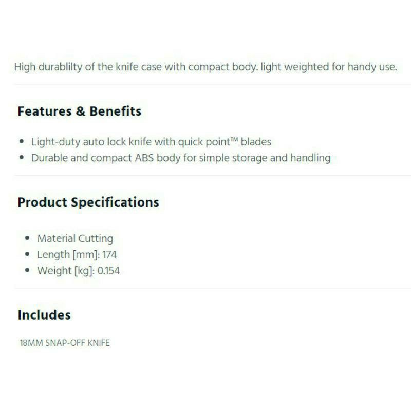 STANLEY BASIC SNAP-OFF CUTTER KNIFE l PISAU TOLAK (18MM) 10-143 l 刀片