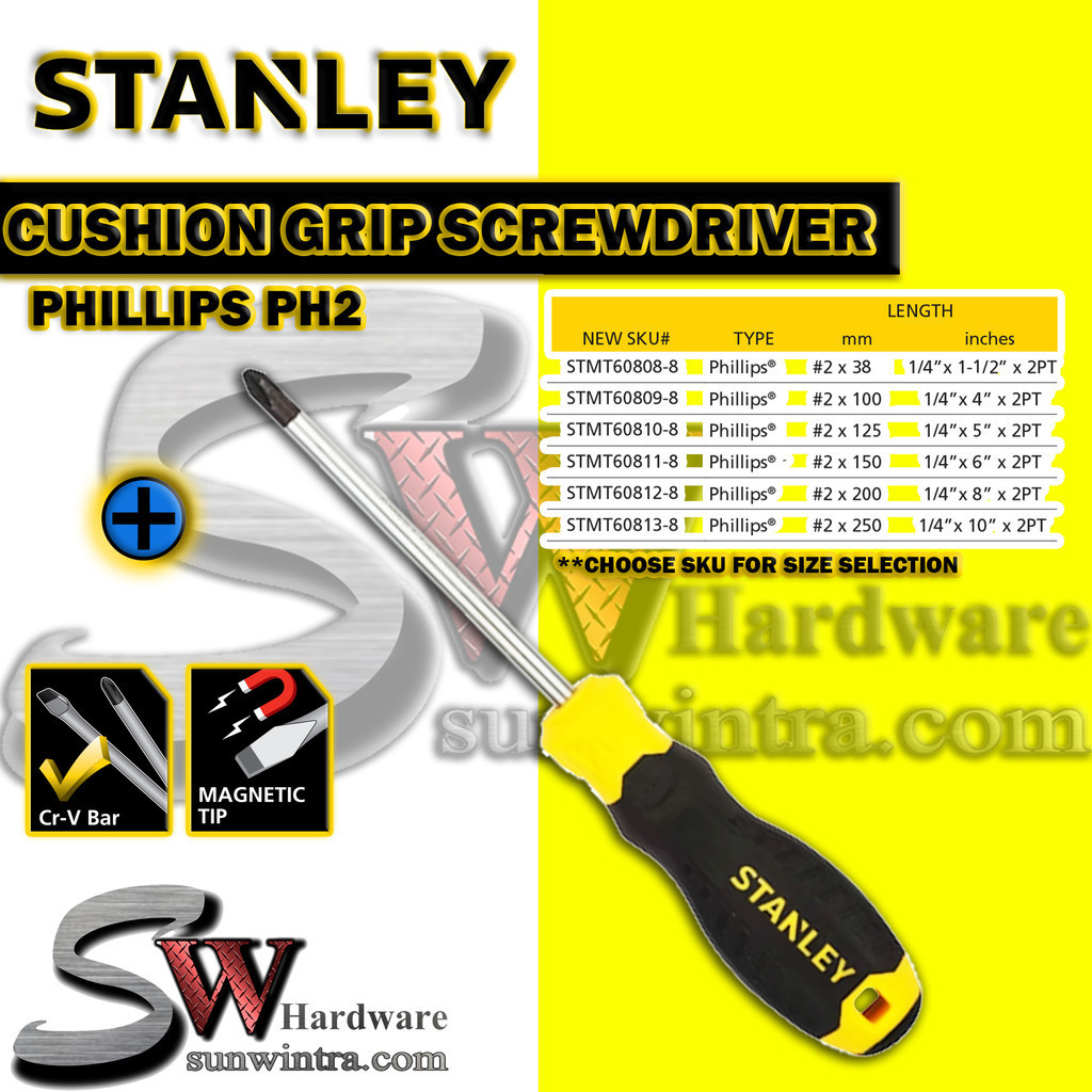 STANLEY CUSHION GRIP 2 PHILIPS SCREWDRIVER PH0 PH1 PH2 PH3 (DIFFERENT LENGTH AVAILABLE) STMT60800-STMT60816