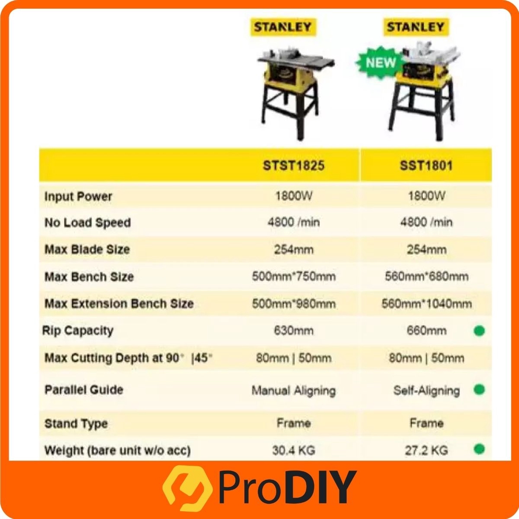 STANLEY SST1801 10" 1800W Table Saw With Stand
