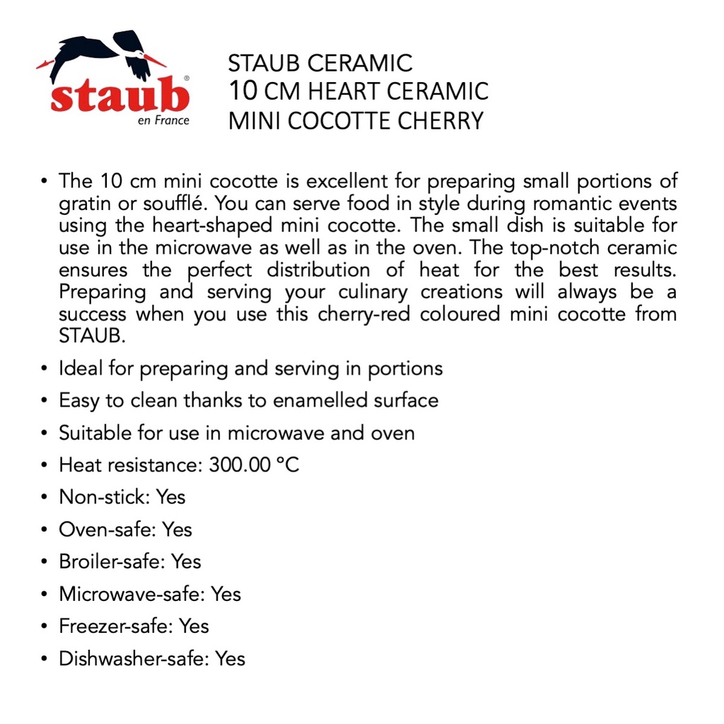 STAUB Ceramic Mini Heart Shaped Cocotte, 10cm, Cherry