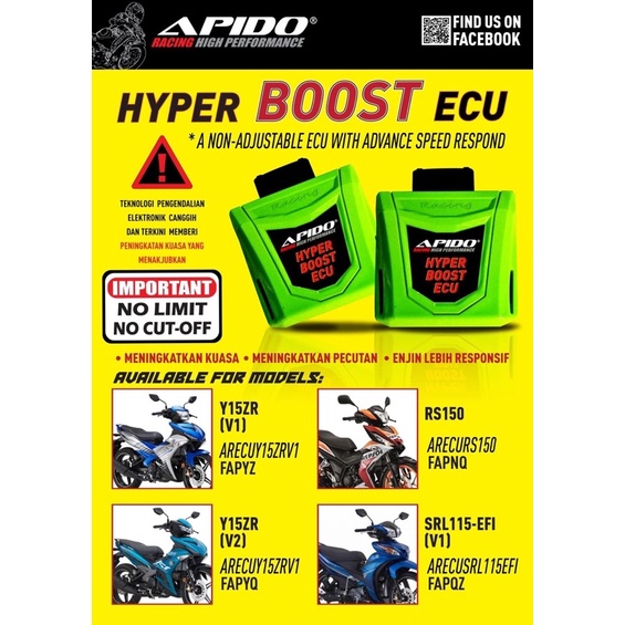 STD RACING ECU SUPRIMO / APIDO ECU Y15 V1 Y15 V2 RS150 V1 RS150 V2 SRL115Fi NMAX Y16 EX5 FUTURE125 DASH 110(PNP ONLY)