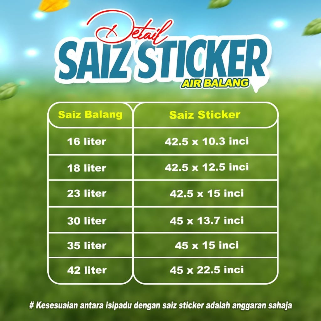 STICKER AIR BALANG PENUH PELBAGAI JENIS (KELILING BALANG)