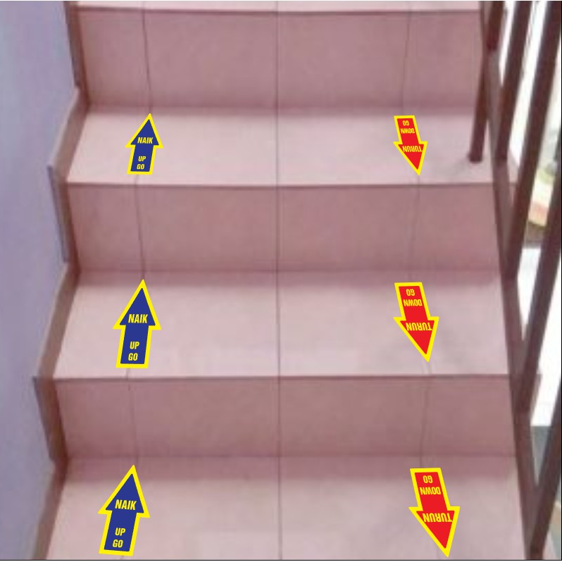 STICKER ARROW NAIK ATAU TURUN TANGGA CEGAH COVID 19