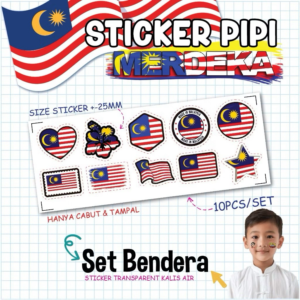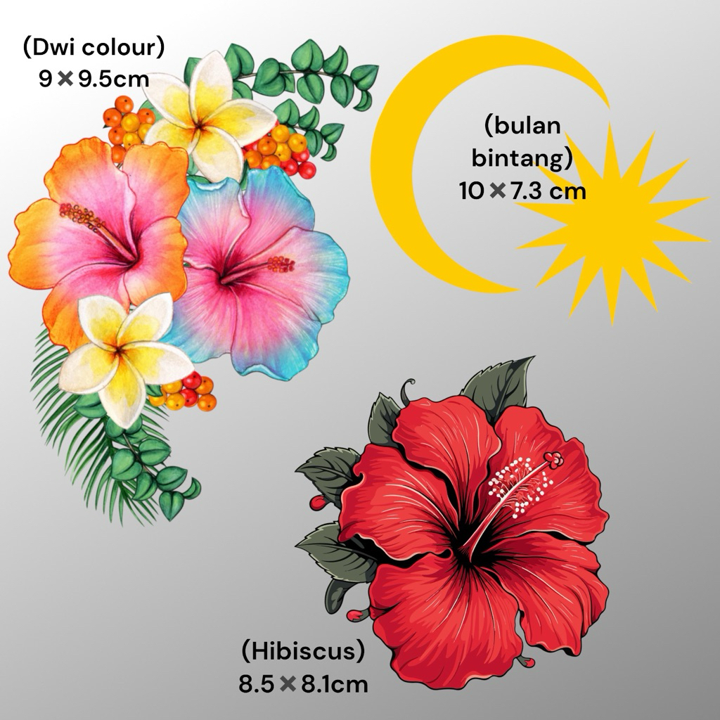 STICKER BUNGA RAYA BULAN BINTANG BAJU MERDEKA