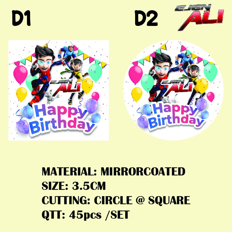 STICKER LABEL BIRTHDAY CARTOON FROZEN ,PONY,EJEN ALI, HELLO KITY,UPIN IPIN,DORAEMON