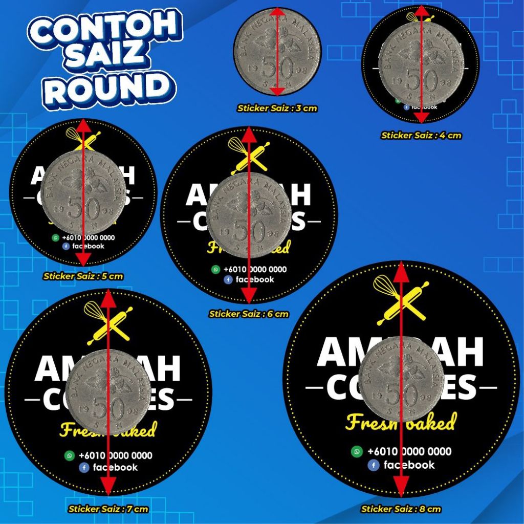 STICKER PRODUK SIMPLE - Label 3cm / 4cm / 5cm / 6cm / 7cm / 8cm - Murah Siap Potong