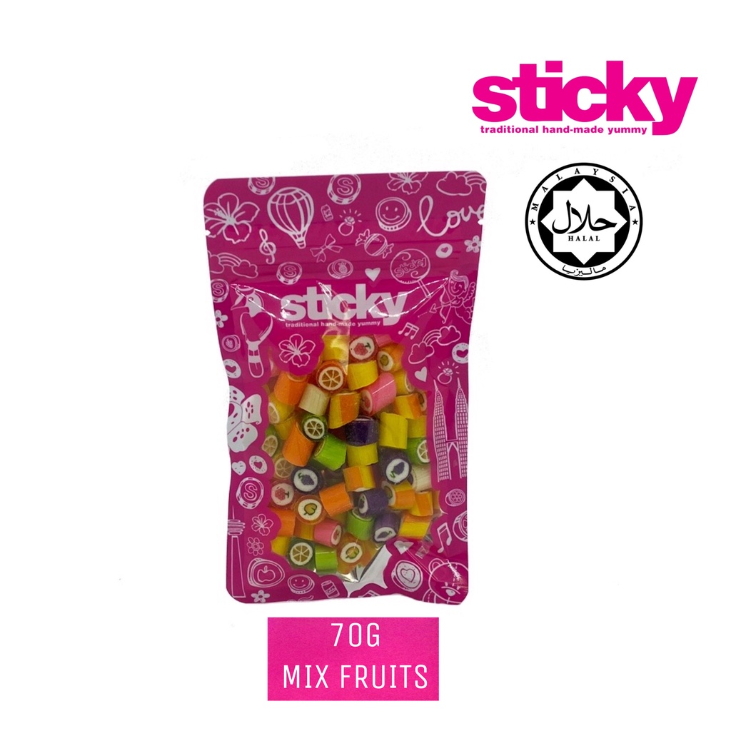 STICKY CANDY MIX ROCK 70G GULA-GULA SWEET FRUITS FLAVOURS HANDMADE
