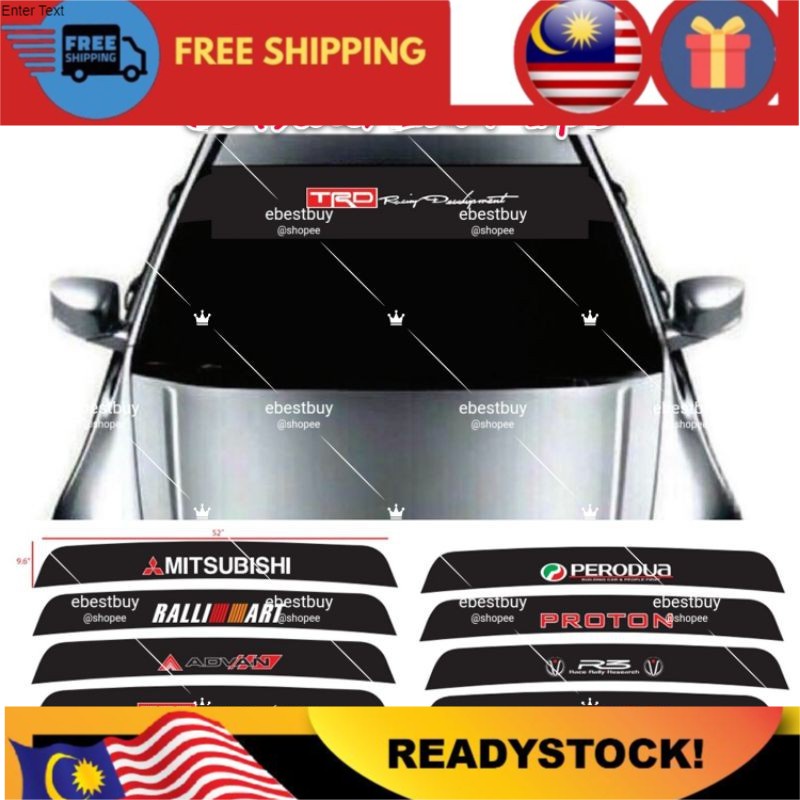 STIKER WINDSCREEN 10' PELBAGAI MODEL Window Windshield Ralliart Mitsubishi perodua proton honda r3 trd mugen nismo hks