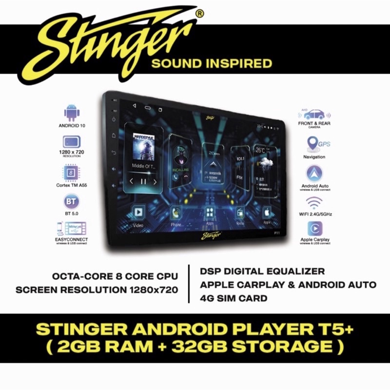 STINGER T5 PLUS ANDROID PLAYER 2RAM 32 ROM Car Android Player 4G Simcard QLED SCREEN CARPLAY DSP