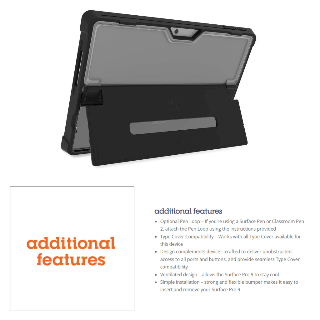 STM Dux Shell for Microsoft Surface Pro 9 - Type Cover Compatibility - Black (Barcode: 810046113011 )