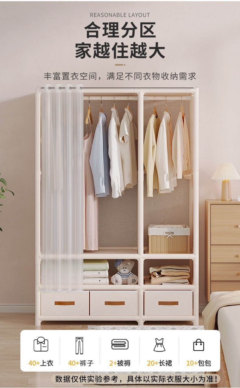 STO JPN Wardrobe And Reinforcement Assembly All-steel Frame Cloth Storage Cabinet Home Bedroom Build Up
