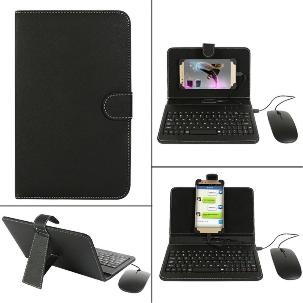 STOCK Portable Type-C/Micro-Usb Wired Keyboard Mouse Set With Leather Cove For Mobile Phones Huawei Xiaomi Vivo Oppo